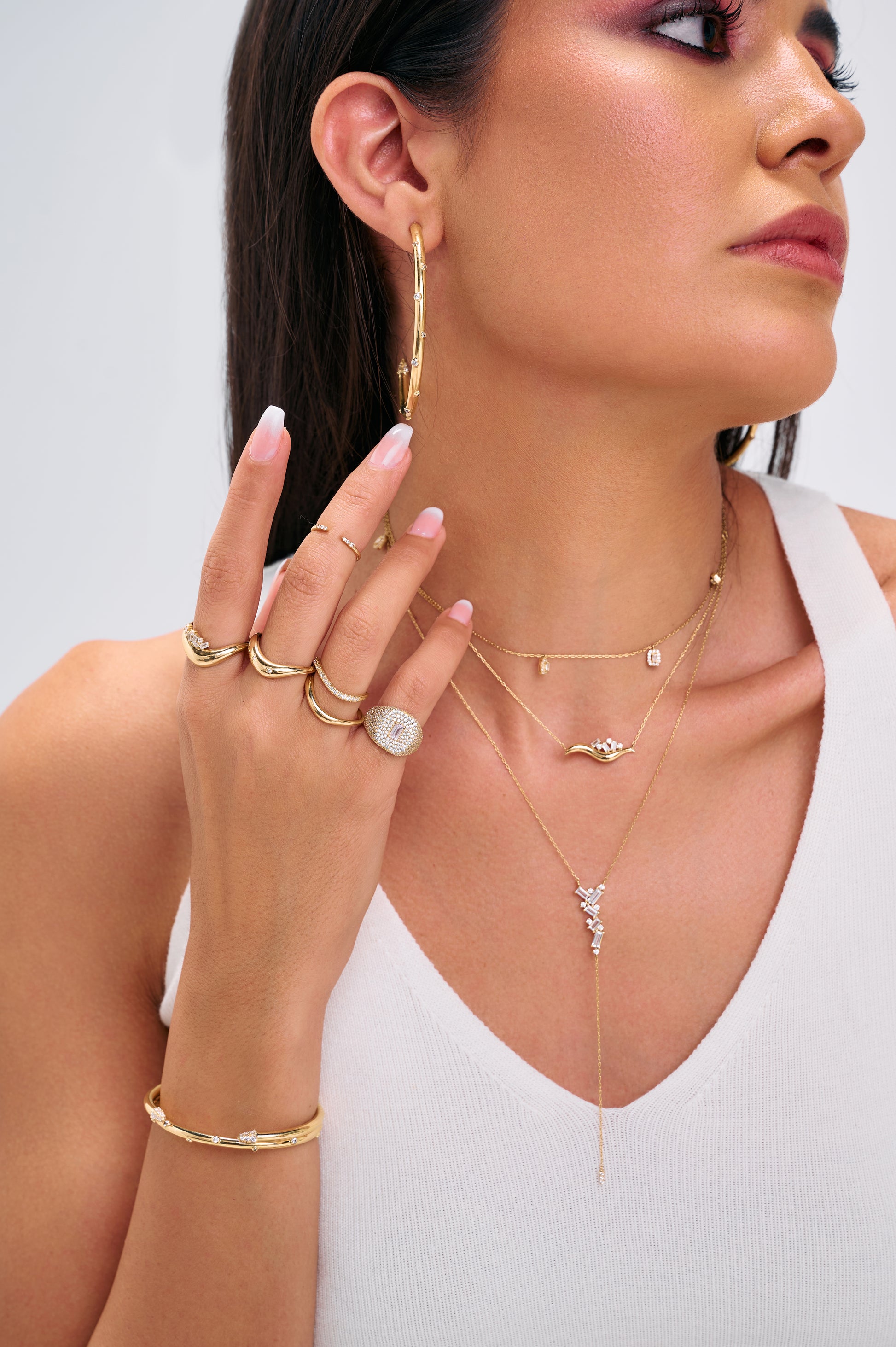 Soft curves, strong shine — the Crystal Necklace flows like a golden wave that